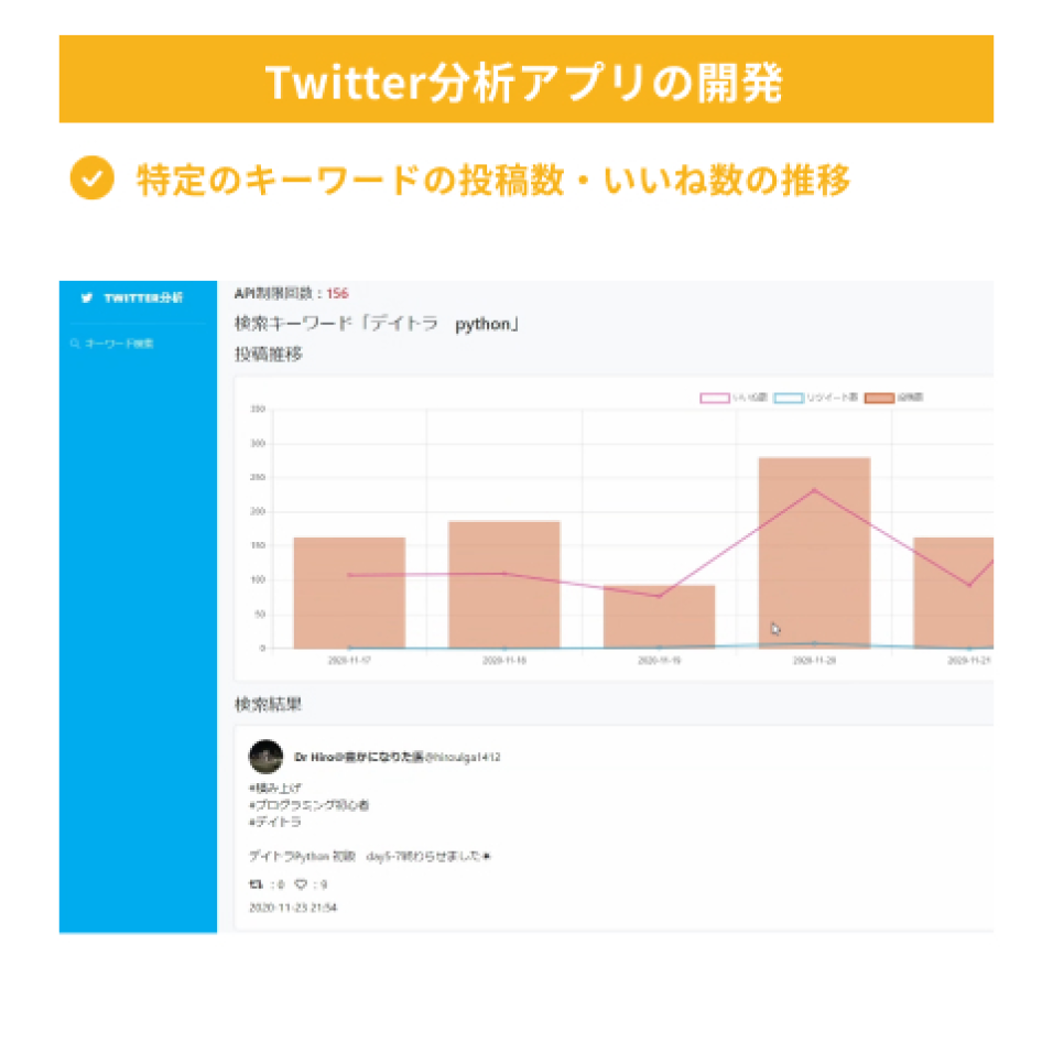PythonのWebアプリケーションフレームワーク「Django」の活用や、アプリケーション開発に必要なスキルを押さえて、XやInstagramの分析アプリを作成していきます!