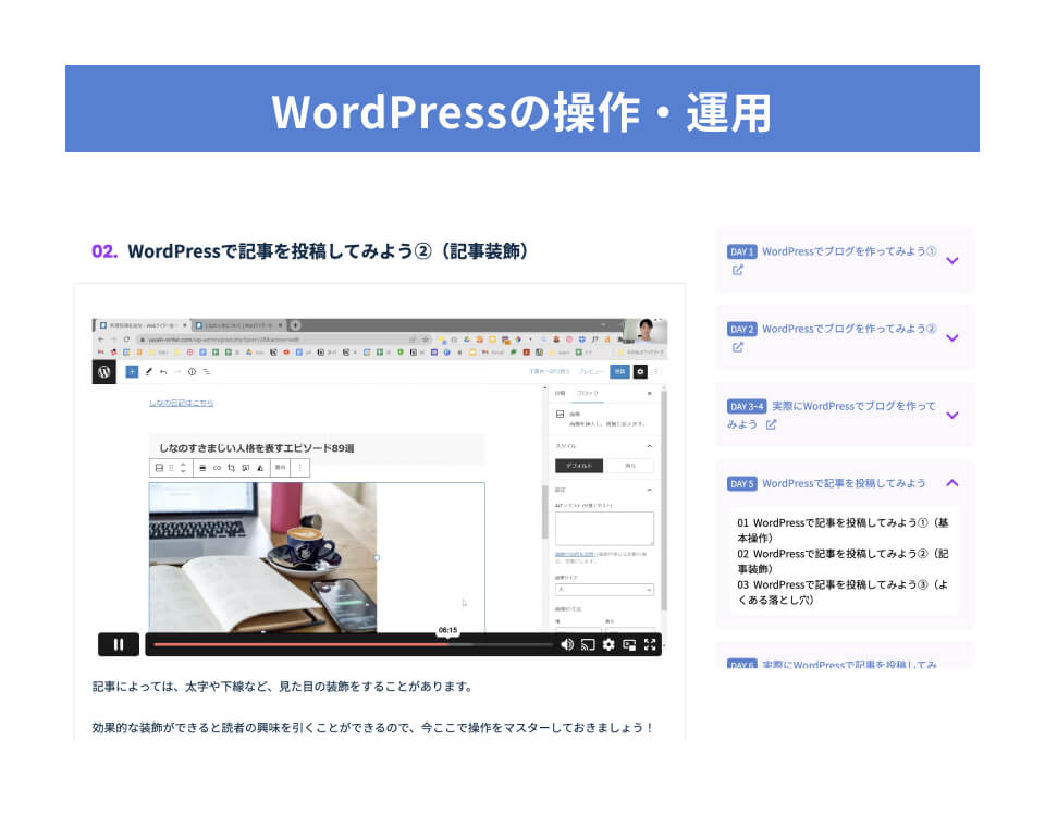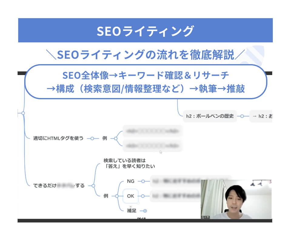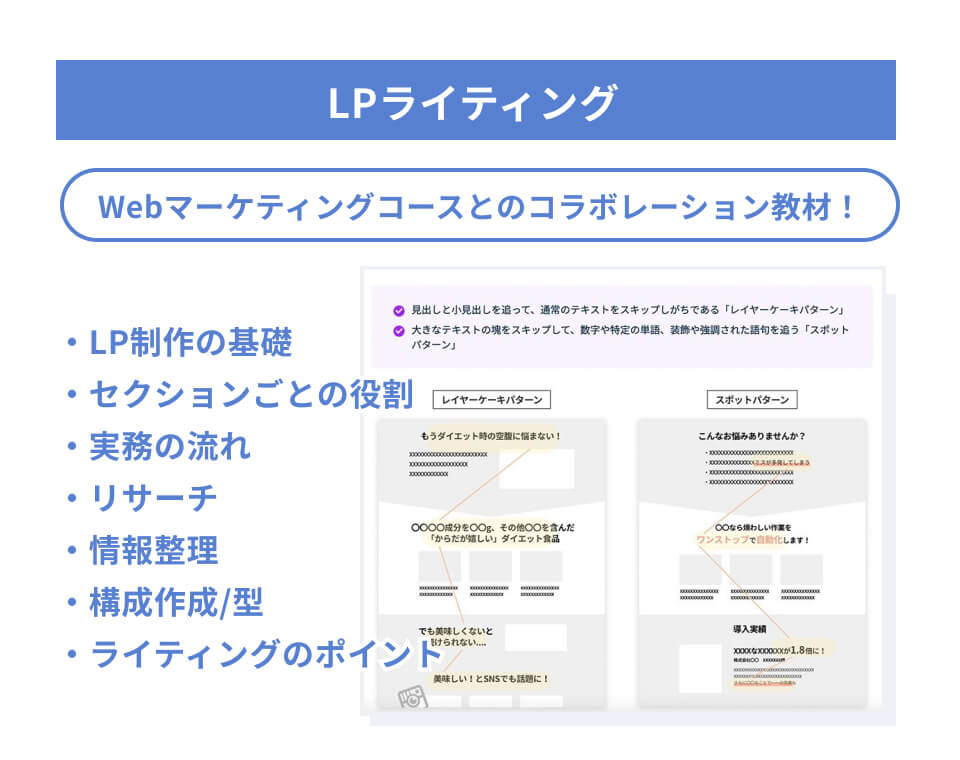 また、「読みやすい文の長さ」や「日本語の使い方」、「セールスライティング」、「リズムの作り方」などなど、細部に宿るライティングスキルも実践を通して習得していきましょう。 -